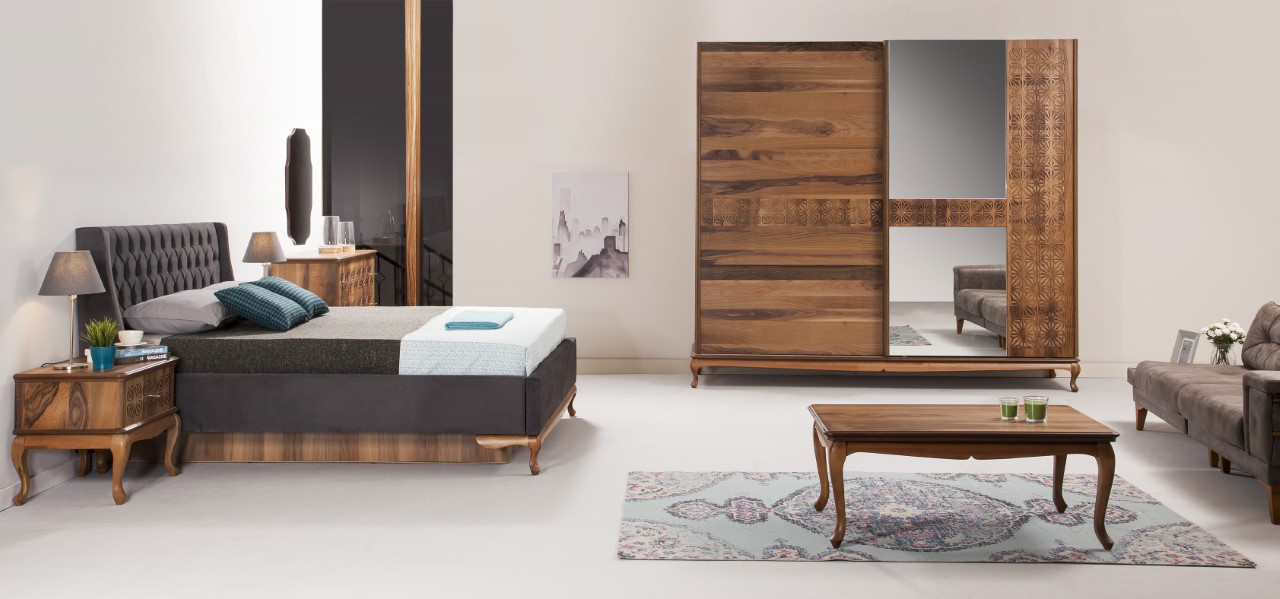 Ahşap kaplama ürünümüz şık ve estetik bir görünüm sunmakla beraber karyolası kendinden bazalı olup birinci kalite malzemeden üretilmiştir.